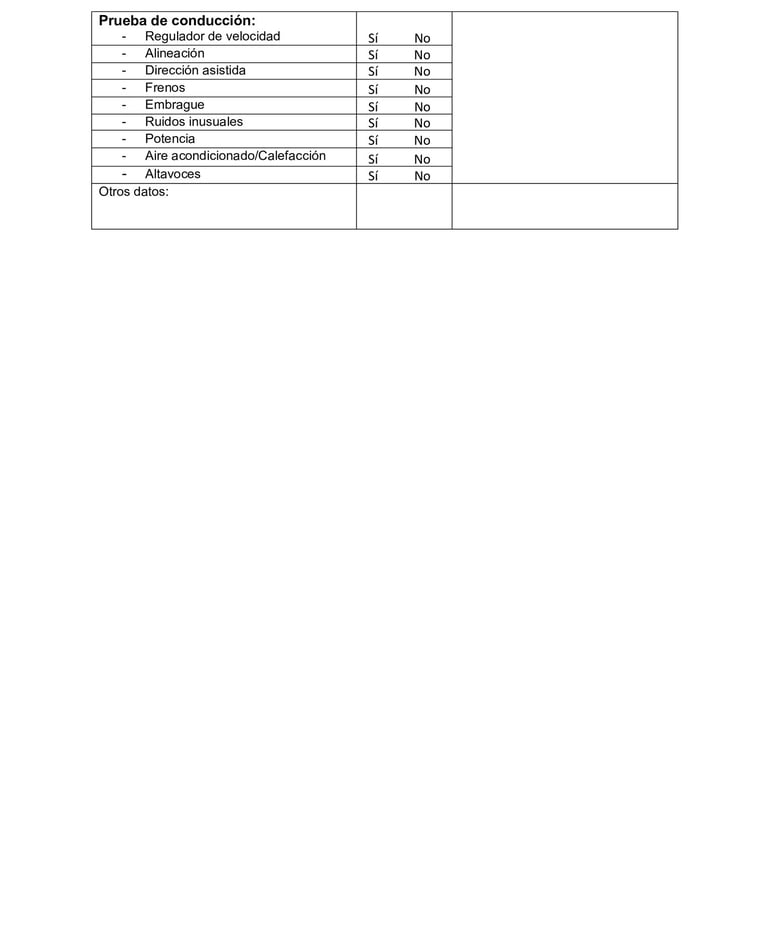 - Evaluación Real del Vehículo: Realizar una prueba de conducción permite evaluar el comportamiento del coche en la carretera y detectar problemas que no son visibles en una inspección estática.